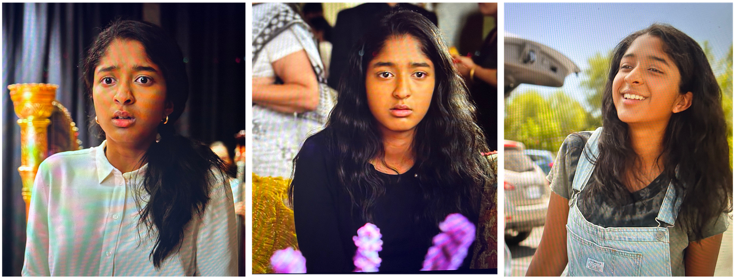 Zettl (2017) states that looking into an event on screen gives viewers the opportunity to experience its intensity, communicating “its complexity and psychological implications” (p. 222). In the Never Have I Ever clip, we see medium shots of Devi’s emotions throughout each scene. This makes us privy to her feelings in a way the people around her may not be. Through shots of her emotions, we learn how shocking the death of her dad was for her, which characters to trust (her mother and best friends), and who serves as both love interest and distraction from her grief (Paxton). A quick introduction is given to her character in only two minutes, but she is the driver of this narrative despite these events happening to her; our understanding of these events is entirely told through her perspective.